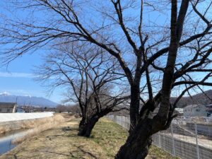 桜の木がある道へ。