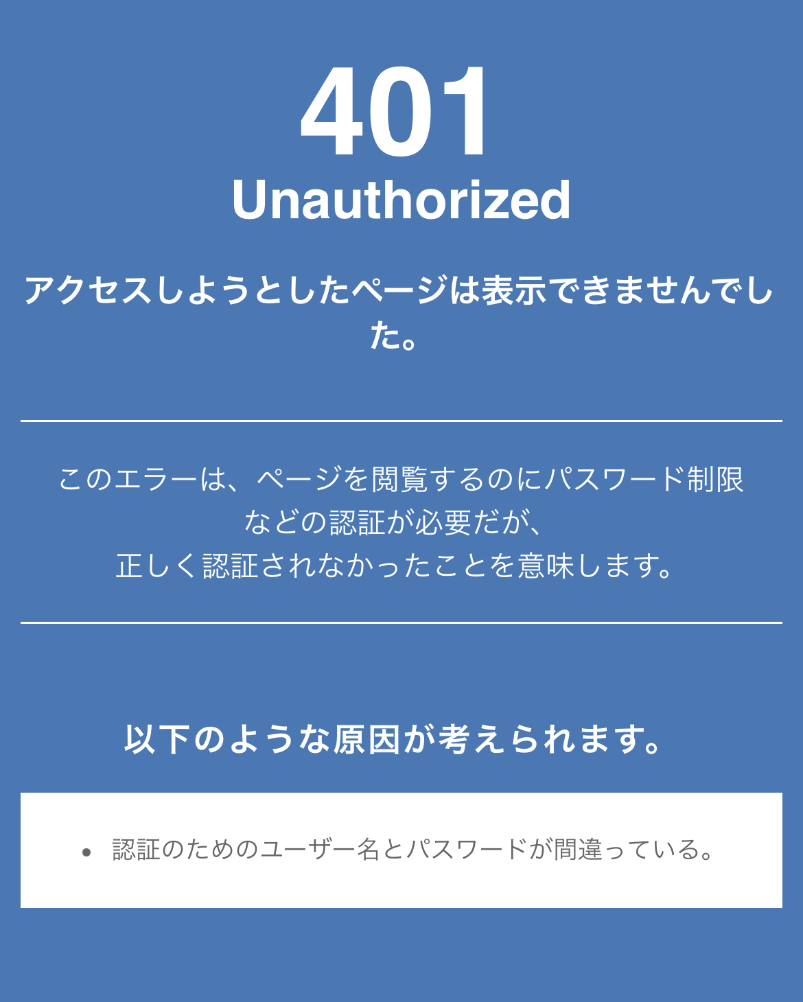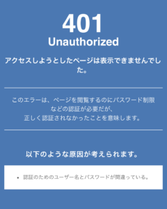 会員専用サイトのページへのリンクをクリックしたのに、「ユーザ名」「パスワード」の入力画面が表示されずに以下の様なエラー画面が表示されてしまうことがあります。