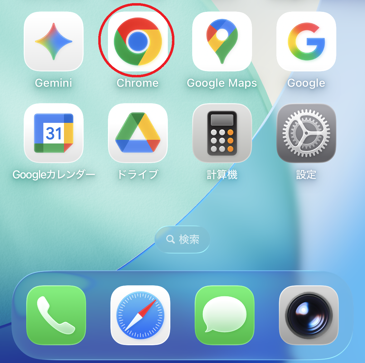 GoogleのブラウザであるChomeを既にインストールしている人はChromeでもログインできます。まずは下図で赤丸で囲まれているChomeのアイコンを長押しして下さい。(お使いのスマートフォンでインストール済のChromeのアイコンを探してください。)